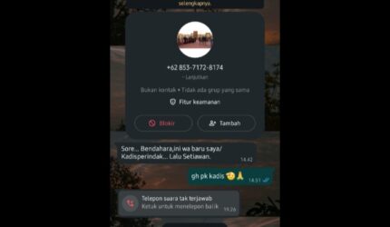 Penipu Catut Nama Kadis Perindag Lalu Setiawan,Hubungi Bendahara Lewat WhatsApp