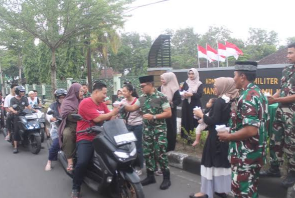 Dengan penuh kehangatan, para prajurit TNI bersama anggota Persit menyapa warga sambil menyerahkan paket takjil berupa makanan ringan dan minuman, termasuk kolak sebagai pelengkap menu berbuka puasa. Senyum ramah terlihat dari para prajurit dan ibu-ibu Persit saat berinteraksi dengan masyarakat.