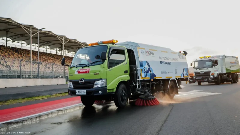 Salah satu langkah penting yang dilakukan adalah pembersihan lintasan menggunakan kendaraan road sweeper, yakni sebuah kendaraan khusus dengan teknologi penyapuan dan penyedotan modern.