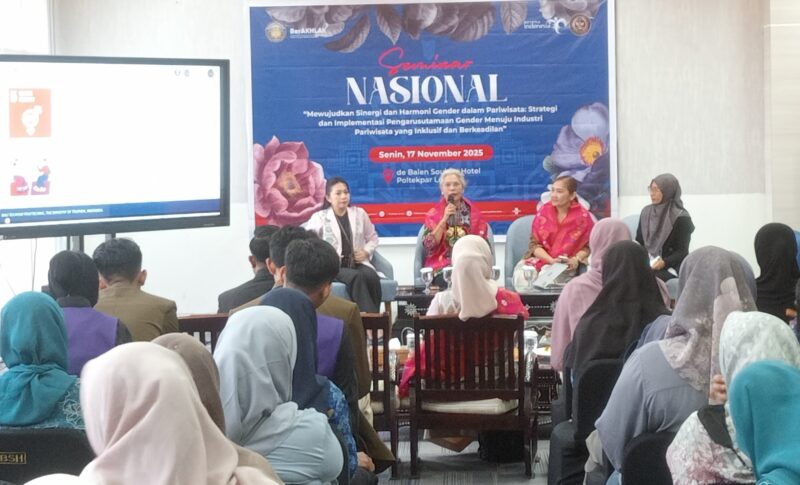 Ketikjari.com— Politeknik Pariwisata (Poltekpar) Lombok menyelenggarakan Seminar Nasional bertajuk “Mewujudkan Sinergi dan Harmoni Gender dalam Pariwisata: Strategi dan Implementasi Pengarusutamaan Gender Menuju Industri Pariwisata yang Inklusif dan Berkeadilan” pada Senin (17/11/2025) di De Balen Soultan Hotel, Kampus Poltekpar Lombok.