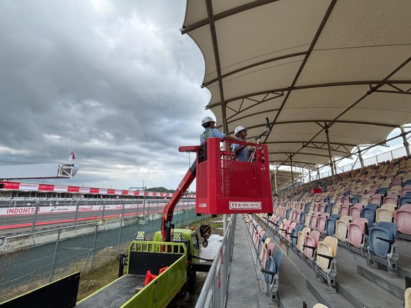 Salah satu langkah yang dilakukan adalah penataan dan perawatan menyeluruh pada area Grandstand A dan B yang berlangsung pada 20 hingga 29 April 2026. Kegiatan ini meliputi pembersihan serta pemeliharaan atap dan kursi penonton guna memastikan standar fasilitas tetap bertaraf internasional.