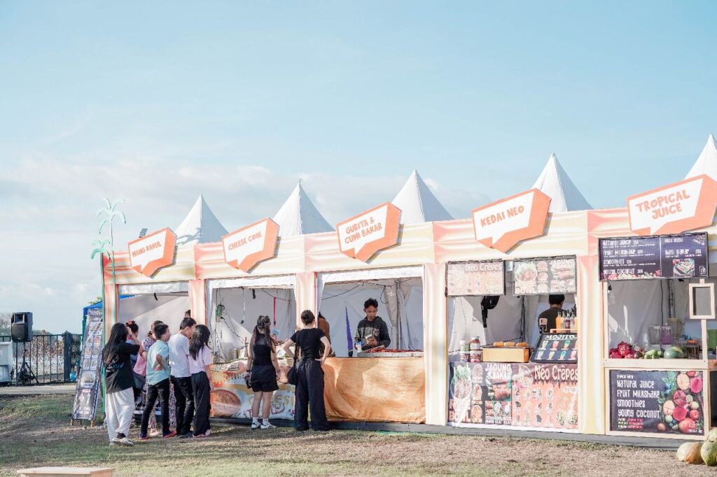 Di area event terdapat booth makanan dan minuman yang menawarkan beragam pilihan dari berbagai tenant dari brand ternama dan UMKM, mulai dari camilan dan minuman ringan hingga makanan berat yang siap mengisi kembali energi sambil piknik di hamparan rumput hijau dengan pemandangan laut. Selain itu, tersedia juga Island Market, yang terinspirasi dari vibe Sunday Market, di sini pengunjung dapat menemukan berbagai pernik lucu dan unik. Semua tenant adalah kreator lokal terpilih, sehingga dengan belanja di sini berarti dapat mendukung komunitas kreatif Bali,” tambah Carolyne.