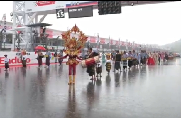 Opening ceremony MFoS Final Round 2025 menjadi panggung kolaborasi antara motorsport dan kekayaan budaya Nusantara, khususnya Nusa Tenggara Barat. Pertunjukan dibuka dengan atraksi Peresean dan Gendang Beleq Mandalika oleh Sekehe Gendang Beleq Desa Sade, yang langsung membangkitkan semangat penonton.