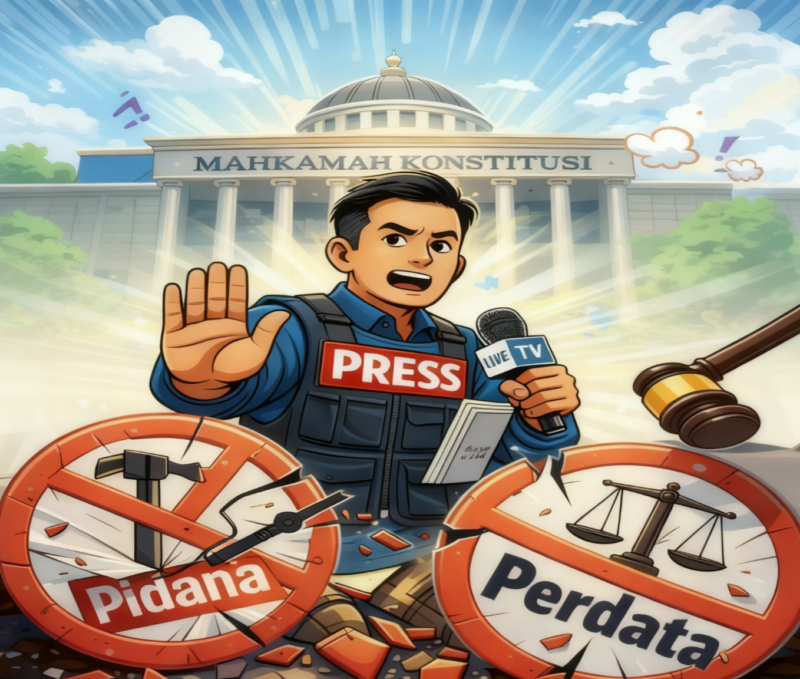 Ketikjari.com – Mahkamah Konstitusi (MK) mengabulkan sebagian permohonan uji materiil yang diajukan Ikatan Wartawan Hukum (Iwakum) terhadap Pasal 8 Undang-Undang Nomor 40 Tahun 1999 tentang Pers (UU Pers).