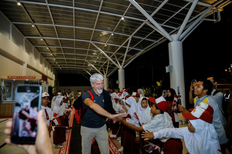Tiba Di Bandara Lombok,Pembalap MotoGP dan Dorna Sport Di Sambut Siswa Siswi SD